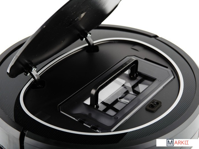 Оснащён турбощёткой, литиевым аккумулятором, пылесборником с двойной фильтрацией и HEPA-фильтром. Управлять пылесосом можно с пульта или с панели управления, оснащённой экраном и сенсорными кнопками. Функция уборки по расписанию позволяет задать своё время начала уборки для каждого из семи дней недели. Есть часы реального времени. Пылесос очень тихий.