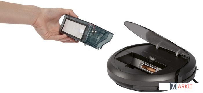 Комплектация 2 боковые щетки и 1 HEPA-фильтр, зарядная станция с зарядным источником питания, пульт ДУ