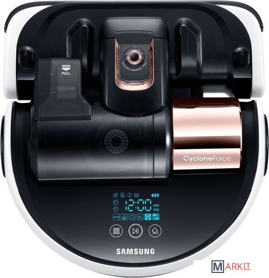 Благодаря инверторному мотору Digital Inverter мощность всасывания робота-пылесоса POWERbot увеличилась в 60 раз по сравнению с моделью робота-пылесоса Samsung VR10F71U. Его новая щётка стала шире, а значит, она чистит эффективнее большие участки. Робот-пылесос Samsung POWERbot всасывает воздух с частичками пыли в свой внутренний отсек. Затем под воздействием мощной центробежной силы, которая создаётся благодаря технологии Cyclone Force, пыль и мусор отделяются и перемещаются в наружный отсек. Очищенный таким образом воздух не засоряет фильтр, а мощность всасывания робота-пылесоса остается постоянно высокой.POWERbot оснащён технологией Point Cleaning, которая позволяет дистанционно отправить робот-пылесос прямо к месту загрязнения с помощью пульта управления. Просто наведите пульт на нужный участок, и робот сам поедет к тому месту, которое вы ему укажете лазером. Одна из отличительных особенностей робота-пылесоса Samsung POWERbot – это система Visionary Mapping Plus, которая включает в себя 10 сенсоров и встроенную цифровую камеру. Она создаёт виртуальную карту вашего дома и выбирает оптимальный маршрут для эффективной уборки.