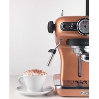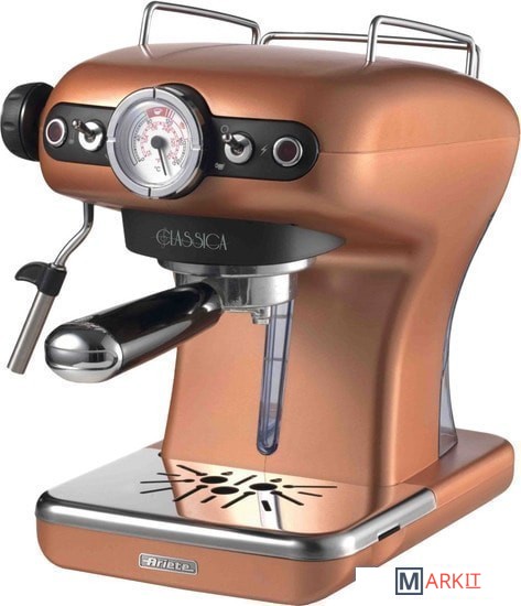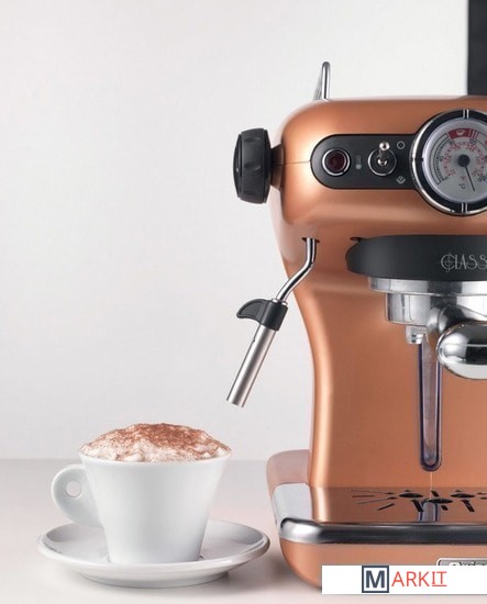Кофемашина для кофе эспрессо, выполненная в элегантном и изысканном винтажном стиле. Мощность 900 Вт, давление пара 15 бар, фильтродержатель для чалд и порошка кофе (на 1 и 2 чашки), съемные поднос и резервуар для воды предоставляют возможность дома насладиться кофе и капучино с густым и насыщенным вкусом, как в баре.