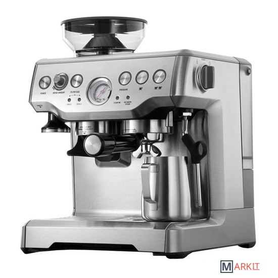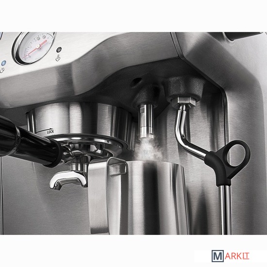 Встроенная кофемолкаКоническая жерновая кофемолка с 18 степенями помола измельчает зёрна непосредственно перед завариванием для раскрытия аромата кофе.Гигиеничное приготовлениеВ отличие от автоматических кофемашин, в рожковой станции не скапливаются остатки молотых зерен, которые загрязняют прибор изнутри и портят вкус напитка. Вы сможете легко протереть латунный холдер после приготовления кофе и быть уверенным в чистом вкусе каждой новой чашки.Точный контроль температуры и давленияС помощью этой станции вы почувствуете себя настоящим бариста. Помпа с давлением 15 бар, мониторинг температуры и встроенный манометр позволят контролировать все этапы процесса приготовления и добиваться оптимальной экстракции кофе любых сортов.Предварительное завариваниеБлагодаря функции предварительного заваривания молотый кофе увлажняется и разбухает. В итоге вы получаете напиток с более насыщенным ароматом.Приготовление молочной пеныДля персональной регулировки текстуры пены предусмотрены капучинатор с вращением на 360˚ и кувшин с индикатором температуры молока от 55 до 65 ˚C. Стальной кувшин имеет носик для создания латте-арта.