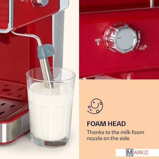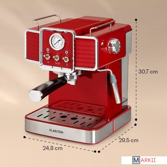 Markit » Кофемашины и кофеварки » Рожковая помповая кофеварка Klarstein Gusto Classico (красный)