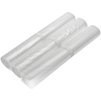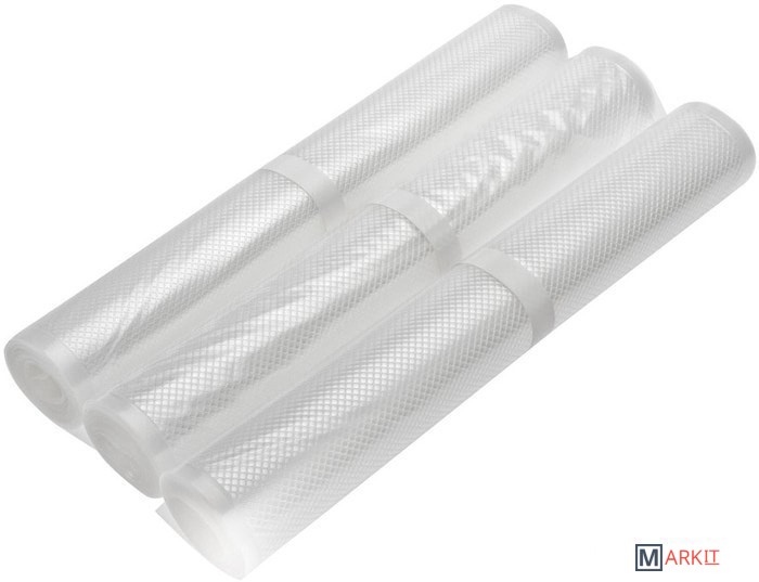 3 рулона профессиональной плёнки размером 28x300 см для вакуумной упаковки.Ребристая внутренняя поверхность для оптимального вакуумирования.Высокая прочность пакета допускает замораживание, использование в СВЧ печи, готовку по технологии Sous-Vide.