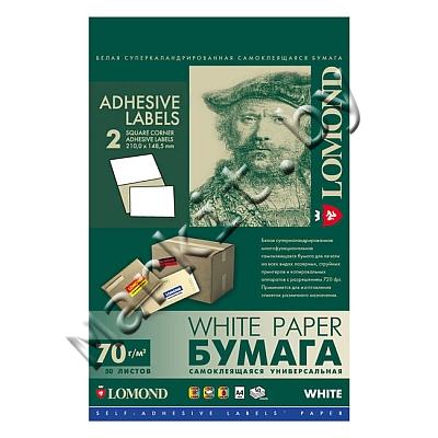 Самоклеящаяся бумага LOMOND (2100225) A4, 2 дел (210x148,5мм), 50 листов Код: 12180