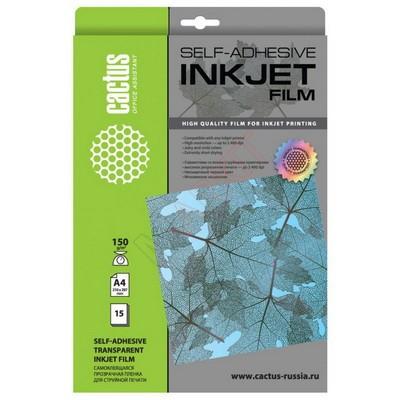 Самоклеющаяся пленка Cactus CS-FSA415015, A4 (210 x 297 мм), 150 г/м2, прозрачная (clear), 15 листов, односторонняя, для струйной печати Код: 40414