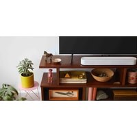 Саундбар Sonos Beam устанавливается на полку перед телевизором или на стену. В саундбаре Sonos Beam реализована технология создания объемного звука за счет использования данных, полученных с помощью пяти измерительных микрофонов. Они оценивают расстояние колонки до слушателей, стен и окружающих предметов, используя затем эту информацию для создания звукового поля за счет переотражения акустических волн. В результате с помощью всего одной компактной колонки удается получить довольно убедительный эффект объемного звучания, однако при желании систему на базе Sonos Beam можно дополнить тыловыми беспроводными колонками этой фирмы.Sonos Beam оснащена четырьмя НЧ-динамиками, твитером, а также тремя пассивными басовыми радиаторами. Такая комбинация, в сочетании с точно согласованными усилителями, позволяет получить насыщенный, сбалансированный и динамичный звук в широком частотном диапазоне. Для подключения источников сигнала в Sonos Beam предусмотрены HDMI-вход и оптический вход. Также есть поддержка AirPlay 2.