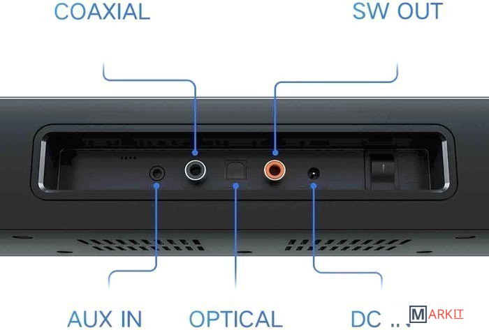 Состав аудиосистемы звуковая панель, проводной сабвуфер