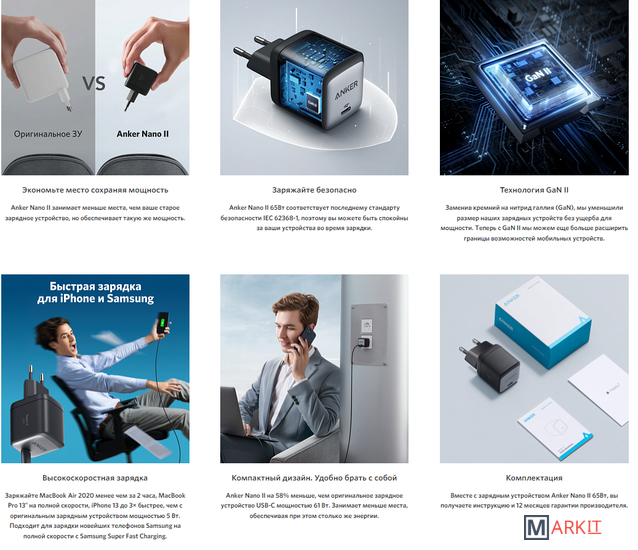 Markit » Зарядные устройства » Сетевое зарядное Anker PowerPort Nano II GaN 65 Вт