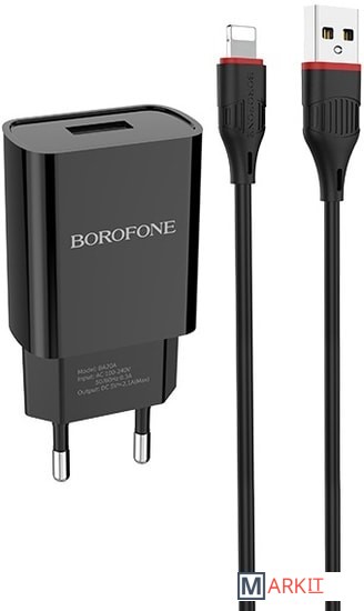 Markit » Зарядные устройства » Сетевое зарядное Borofone BA20A Lightning (черный)