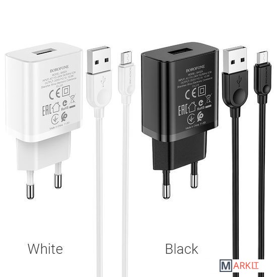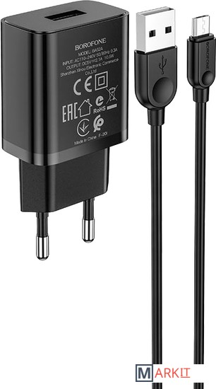 Markit » Зарядные устройства » Сетевое зарядное Borofone BA52A microUSB (черный)