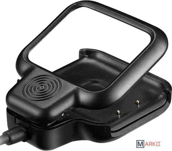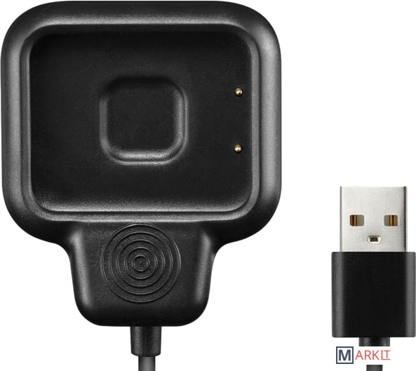 Зарядное устройство для умных часов Canyon с двухпиновым разъемом зарядки. Оснащено клипсой.
