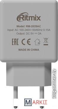 Markit » Зарядные устройства » Сетевое зарядное Ritmix RM-2025AC (белый)