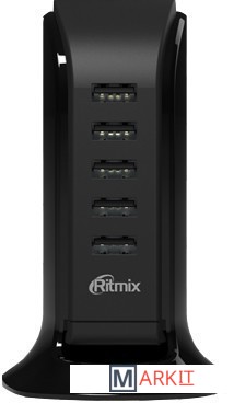 Ritmix RM-5055AC — универсальное сетевое зарядное устройство с током 2,1 А на каждый разъем USB (максимальный суммарный ток, когда все разъемы заняты — 5,8 А). Подходит для любой современной портативной техники с возможностью зарядки от USB-порта (смартфоны, телефоны, планшеты, электронные книги, камеры, игровые приставки, мини-колонки, наушники, видеорегистраторы). Имеет пять разъемов USB, в комплект включен мягкий шнур питания, позволяющий поставить зарядку в удобном месте, не привязываясь к расположению розетки. В продаже имеется в двух цветовых исполнениях, черном и белом.