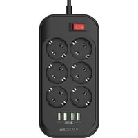 Сетевой фильтр Artstyle CL-6403B эффективно защитит вашу технику от помех и перепадов напряжения, в том числе возникающих во время грозы, и резких кратковременных нагрузок, появляющихся сразу после включения электроприбора. Эта модель оснащена шестью утопленными заземлёнными розетками типа «Евростандарт». Благодаря диагональному расположению отверстий вилки любого размера и формы не будут мешать друг другу, даже если вы используете сразу все «гнёзда» одновременно. Максимальная нагрузка составляет 2500 Вт. Кроме того, фильтр снабжён четырьмя портами USB (5 В на 3,4 А) для зарядки ваших смартфонов, планшетов и прочих совместимых устройств.
