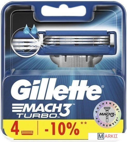 Markit » Бритвенные станки и лезвия » Сменные кассеты для бритья Gillette Mach3 Turbo (4 шт)