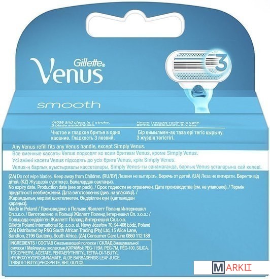Markit » Бритвенные станки и лезвия » Сменные кассеты для бритья Gillette Venus Smooth (2 шт)