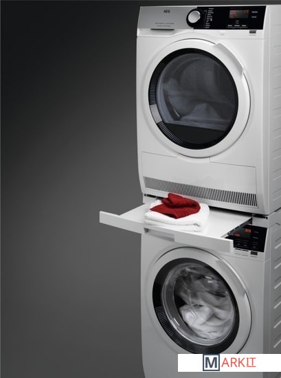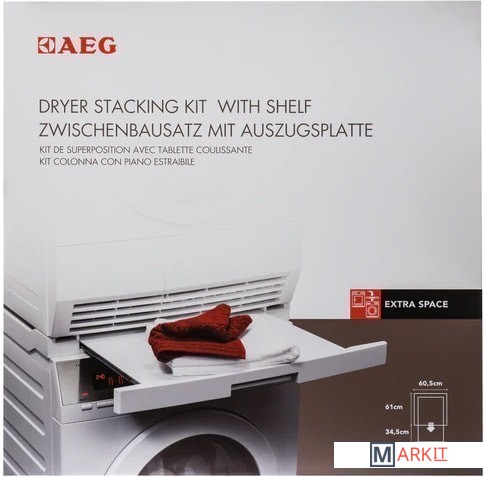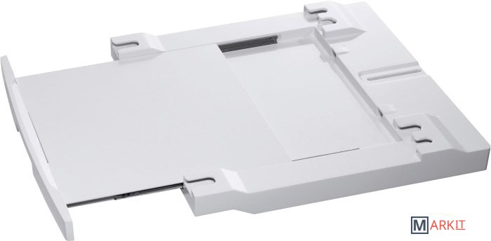 Набор для вертикальной сборки с выдвижной полкой высвободитдополнительное место. Обеспечивает безопасную установку сушильногобарабана на стиральную машину без каких-либо креплений. Выдвижнаяполка упрощает загрузку и разгрузку и предоставляет место дляскладывания белья.Выдвижная полка выдвигается до 34 см.