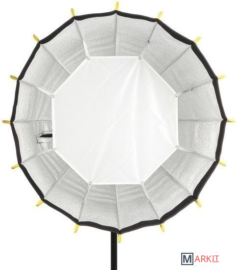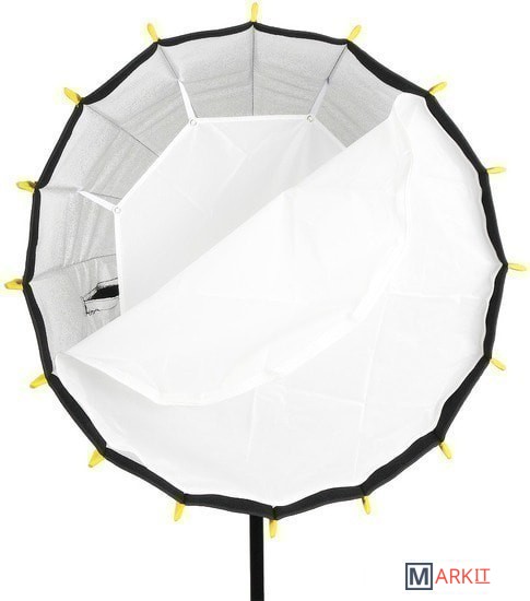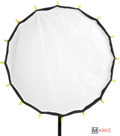 Глубокий параболический быстроскладной софтбокс с байонетом Bowens, радиус 65 см, глубина 60 см. Предпочтительное использование: для светодиодных источников постоянного света. Сумка для хранения в комплекте.