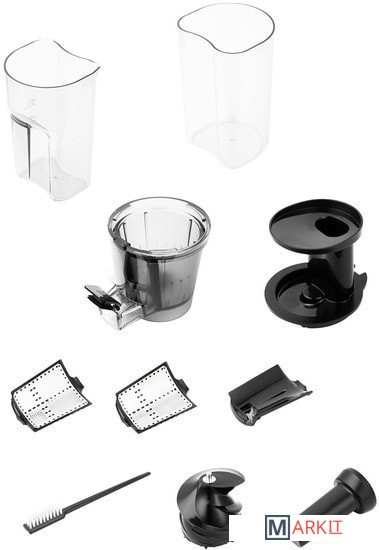 | Комплектация | 3 сменные сетки-фильтра: - для сока; - для смузи; - для сорбета. Щетка для чистки. |