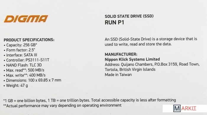 Markit » SSD » SSD Digma Run P1 256GB DGSR2256GP13T