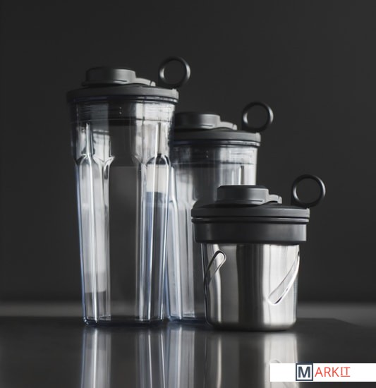 Мощность и удобство использованияМощный двигатель 1000 Вт гарантирует быстрый и максимально эффективный результат.3 съемные чашиБлагодаря комплекту из 3 чаш и набору съемных крышек свежеприготовленные смузи или спортивные коктейли удобно брать с собой.Запатентованная система ножейСистема Kinetix состоит из 4 прочных ножей из легированной стали, расположение которых исключает появления «пустых зон» по всему объему чаши.