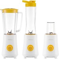 Комплектация - моторный блок;- чаша блендера;- крышка чаши;- колпачок;- колба для охлаждения жидкости с крышкой;- блок ножей для блендера;- бутылка;- крышка бутылки;- чаша кофемолки;- блок ножей для кофемолки.