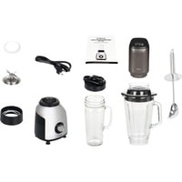 | Комплектация | Съемный блок ножей; Фиксатор блока ножей; Силиконовое уплотнительное кольцо; Крышка для хранения; Стаканы на 720 мл и 1200 мл; Походная крышка; Ручной вакуумный насос; Съёмный шнур питания; Ложка-толкатель;Инструкция. |