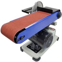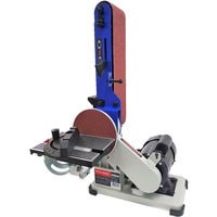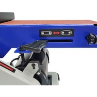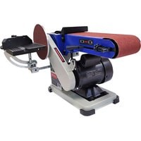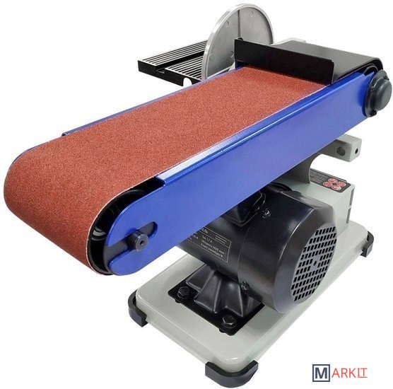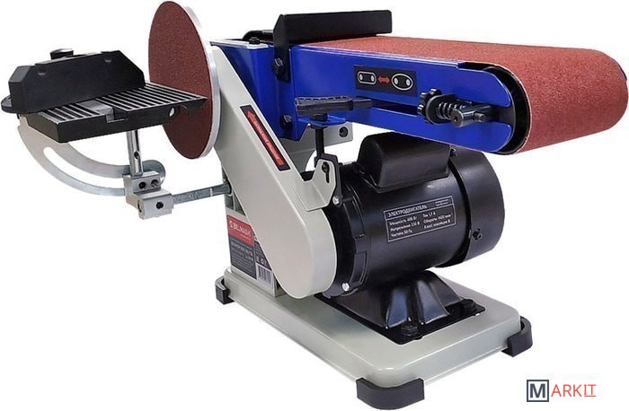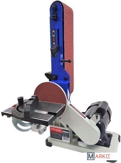 Самый компактный станок в линейке. Бюджетная модель. Корпус станка выполнен из алюминия. А опорная платформа из стали.Рабочий стол – алюминиевый с П-образным пазом под установку углового упора, он используется как при шлифовании лентой, так и диском. Угол наклона стола от 0 до 60 град. Блок шлифования лентой – поворотный.Абразивные материалы стандартные: лента – 915×102 мм, диск – Ø152 мм. Выключатель имеет специальный ключ.Станок настольного исполнения, надежно удерживается на верстаке за счет ножек-виброгасителей и достаточно большой массы для маленького аппарата – 15 кг.ПРЕИМУЩЕСТВАкомпактность;не требуется стационарная установка;выключатель с ключом.