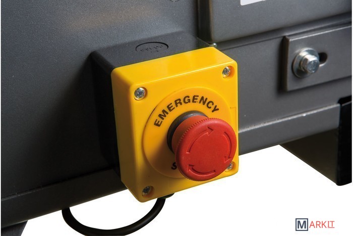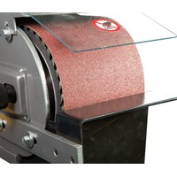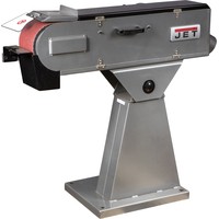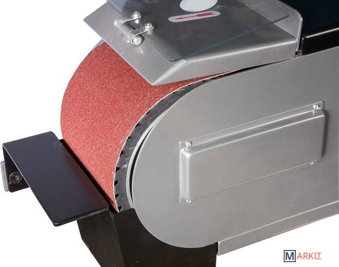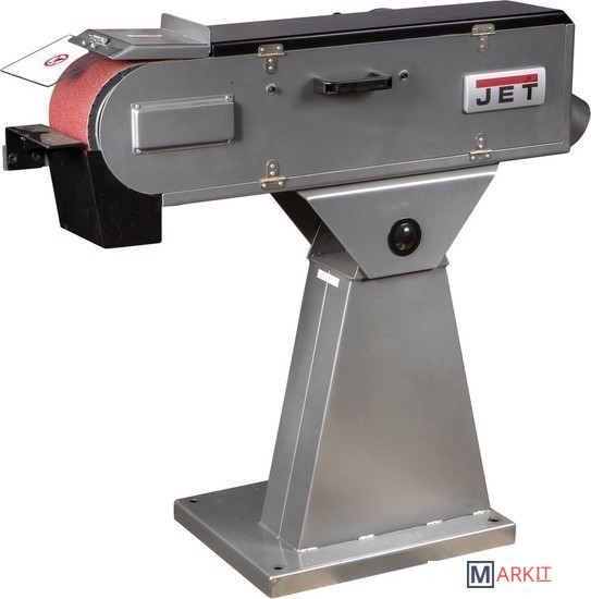 JBSM-150 - универсальный ленточный шлифовальный станок. Он предназначен для окончательной шлифовки готовых деталей или заготовок, обработки сварных швов, снятия ржавчины и заусенцев. Это старшая модель в линейке, ширина шлифования (как и ширина абразивной ленты) - 150 мм. Максимальная длина шлифования у этого станка - 500 мм, длина ленты 200 мм. Чтобы устранить ее проскальзывание, ведущий и ведомый ролики имеют обрезиненную поверхность. Несмотря на то, что станок оснащен мощным электродвигателем на 4 кВт, подключить его можно к стандартной бытовой электросети напряжением 230 В. Привод обеспечивает постоянное движение ленты со скоростью 29 м/сек. Для удобства работы рама станка имеет приспособление для ее подъема до +30° и опускания до -15°. Чтобы обезопасить оператора, у JBSM-150 имеется защитный экран наиболее вероятной травматической зоны над ведомым роликом. Если не требуется шлифовать крупные заготовки по длине ленты, ее можно закрыть защитной крышкой. рядом с рабочей зоной предусмотрена кнопка аварийного отключения питания. Чтобы эффективно отводить пыль и стружку, неизбежно образующихся при шлифовке, станок оборудован устройством пылеотсоса с диаметром патрубка 97 мм. Также к JBSM-150 можно подключить внешний пылеотсос с диаметром парубка 100 мм. Станина у данной модели имеет повышению прочность и жесткость. Ее широкое основание обеспечивает устойчивость и снижает вибрации при работе. Как и все оборудование JET данного класса, станок полностью готов к работе, необходимо лишь установить его и закрепить на полу при помощи болтов. JBSM-150 комплектуется всем необходимым, в том числе и шлифовальной лентой (класс зернистости - 60).