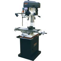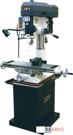 Сверлильно-фрезерный станок JMD-18 по функциональным возможностям представляет собой аналог модели JMD-15, имея более мощный электродвигатель и большие габариты. Эта модель предназначена для выполнения большого объема работ, связанных с фрезерованием и сверлением. Мощная литая станина, массивная стойка изготовлены из литого чугуна, создающие необходимую устойчивость всей конструкции. Оборудование обладает технологическими возможностями для выполнения операций по нарезанию резьбы. Модель JMD-18 оснащена механизмом поворота головы на 360 0, создавая широкие возможности для технологической обработки заготовок. Фрезерная головка в этой модели имеет функцию изменения положения в горизонтальной плоскости. Качество обработки заготовок обеспечивается наличием контроля над глубиной сверления.Сверлильно-фрезерный станок выполняет широкий спектр операций. Максимально допустимый диаметр сверла составляет 16 мм. При выполнении фрезерных работ допускается работа с режущими инструментами, максимальный диаметр которых не превышает 63 мм. Модель оснащена шпинделем с конусом МК-3, зажимная тяга которого составляет М12. Для повышения жесткости фиксации опора шпинделя оборудована группой конических подшипников. Ход пиноли составляет 90 мм. Для повышения качества обработки и повышения производительности работ, на станке установлена функция микроподачи шпинделя. Технологический процесс контролируется механической регулировкой вылета шпинделя.Моторная группа станка имеет мощный асинхронный двигатель - 2,6 кВт, имеющий функцию реверса. Благодаря реверсу шпиндель может вращаться вправо и влево. Наличие ременной передачи с концевым выключателем, позволяет выполнять обработку в 12-ти скоростных режимах. Частота диапазона вращения шпинделя составляет 100-2160 об/мин. Крестовый стол с 3-мя Т-образными пазами шириной 14 мм, позволяют выполнять установку дополнительной оснастки. Рабочий стол оснащен прецизионным механизмом.Вес станка в снаряженном состоянии составляет 290 кг. Станок комплектуется лампой освещения, торцевой фрезой диаметром 75 мм и сверлильным патроном.
