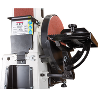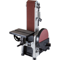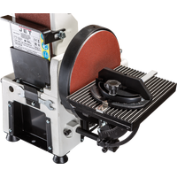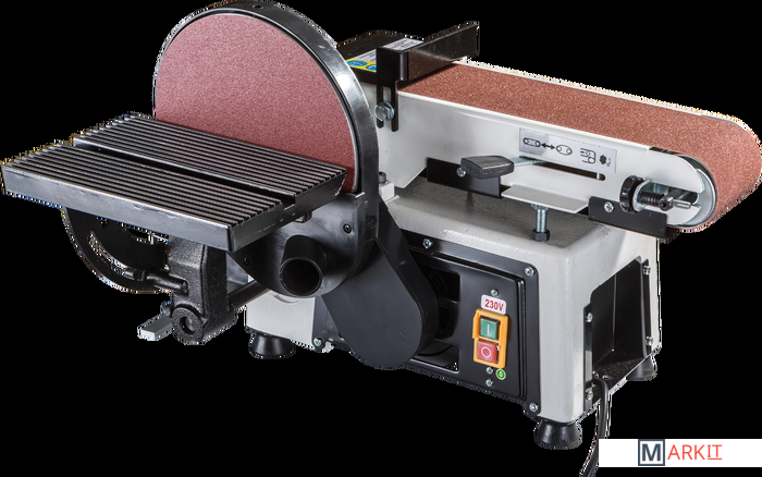 Тарельчато-ленточный шлифовальный станок JSG-233A-M для профессионального применения в частных столярных мастерских. Это относительно компактная модель, предназначенная для настольного размещения, но сделанная точно и основательно. Корпус выполнен литым из чугуна, что повышает устойчивость и способствует снижению вибраций при работе. Рабочий стол из алюминиевого литья и установлен на мощном поворотном кронштейне с дополнительной опорой, увеличивающей жесткость.