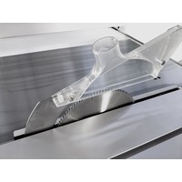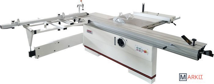 Механизм блокировки вала для облегчения замены пильного дискаВспомогательный электродвигатель для привода подрезного дискаПильный модуль из чугунного литьяРегулировка положения расклинивающего ножаРегулировка положения подрезного диска маховикамиРегулировка наклона пильного дискаРегулировка глубины пропилаРабочий стол из чугунного литьяСъемный расширитель рабочего стола из стального листа справаСъемный удлинитель рабочего стола из стального листаРегулируемый параллельный упор с эксцентриковым зажимом и со вспомогательной рукояткой точной настройкиПодвижный стол из алюминиевого профиляВозможность регулировки шариковых направляющих подвижного стола для компенсации износаСъемный расширитель подвижного стола с телескопической опоройЭксцентриковый прижим заготовки для фиксации на подвижном столеПоперечный упор подвижного стола с линейкой и регулируемыми стопорами заготовкиРегулируемый продольный упорСъемный поворотный упор подвижного стола с угловой разметкойJet JTSS-3200X2 - форматно-раскроечный станок с удачной и хорошо продуманной конструкцией для интенсивной работы с любыми, в том числе крупными и тяжелыми, заготовками. Ресурс основных узлов и модулей рассчитан на интенсивную эксплуатацию в одну или в несколько смен, при этом обслуживание, переналадка и настройка максимально упрощены.Одна из особенностей этого станка – привод подрезного диска отдельным двигателем. Конструкция узла такова, что при смене положения основного пильного полотна подстройка подрезного не требуется. С другой стороны, она максимально упрощена: рукоятки со стопорами расположены снаружи корпуса и обеспечивают смещение вверх-вниз и вправо-влево. Регулировка положения (наклон и высота) большого диска выполнена как обычно, а его замена упрощена: вал блокируют специальным штифтом с верхней стороны стола через отверстие в нем.Подвижный стол длиной 3200 мм ходит на шариках, уложенных в направляющие из высоколегированной закаленной стали. Это точная и долговечная конструкция, к тому же, имеющая регулировку для компенсации износа (производится вращением настроечных винтов, которые расклинивают полки профиля с направляющими шариков). Рабочая поверхность дополнена съемным расширением с телескопической опорой и может оснащаться рядом вспомогательных приспособлений; все они так же выполнены съемными. Для пиления прямоугольных панелей оптимален поперечный (фронтальный) упор со скользящими откидными башмаками, для резов под углом – транспортирный упор. В обоих случаях может применяться эксцентриковый прижим заготовки и продольный (задний) упор, «поджимающий» деталь к переднему.Каретку можно заблокировать в любом удобном положении и использовать станок для продольного пиления вдоль параллельного упора. Он выполнен из жесткого алюминиевого профиля и установлен на мощном чугунном суппорте, который перемещается по цилиндрической чугунной штанге. Предусмотрена миллиметровая шкала, эксцентриковый зажим и вспомогательные настройки.Станок имеет массивную жесткую конструкцию со множеством литых чугунных деталей и поставляется в комплектации, включающей все необходимое для полнофункционального использования, отдельно требуется докупать только пильные диски (их выбор обусловлен материалом заготовок).