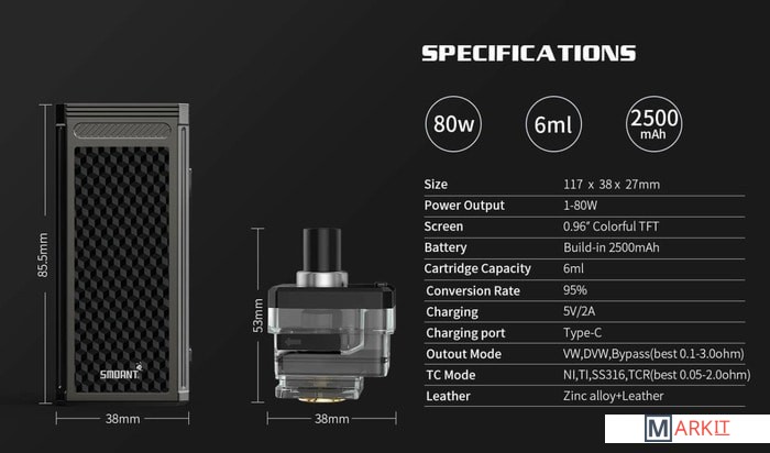 Markit » Электронные парогенераторы » Стартовый набор Smoant Pasito II (6 мл, алмазная решетка)