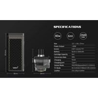 Комплектация - кабель для зарядки- картридж 6 мл- испаритель 0.3 Ом (предустановлен)- испаритель 0.6 Ом- документация