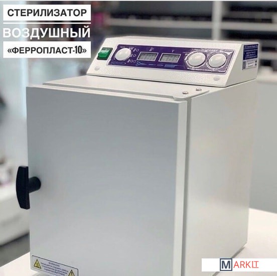 Стерилизатор "Ферропласт" – 10 предназначен для воздушной стерилизации термическим способом маникюрного инструмента, посуды из стекла и прочих косметических аксессуаров, теплоустойчивых до 200°С.Габаритные размеры, (ШxГxВ): 345 x 430 x 450 ± 5 мм.Вес: 13.5 кг.Время выхода на режим 180°С: 30 минут.Полезный внутренний объем камеры стерилизации: 10 литров.Шум: 65 дБ.