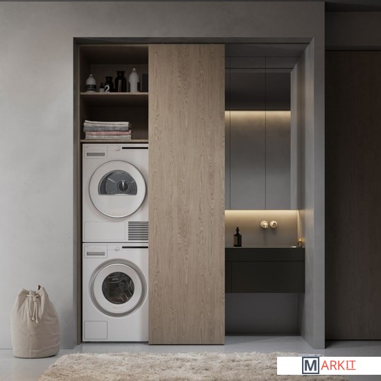 Для размещения домашней прачечной от ASKO требуется менее одного квадратного метра, а именно 0,72м2. Полный комплект бытовой техники ASKO для домашней прачечной включает в себя стиральную машину, сушильную машину и сушильный шкаф, а также могут быть использованы дополнительные вспомогательные элементы.
