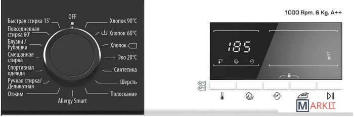 Хлопок 90°Хлопок 60° + предварит. стиркаХлопокЭко 20°СинтетикаШерстьПолосканиеAllergy SmartОтжимРучная стирка/ДеликатнаяСпортивная одеждаСмешанная стиркаБлузки/РубашкиПовседневная стирка 60'Быстрая стирка 15' |