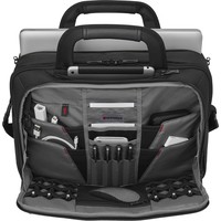 - Отделение для ноутбука с 14-16"Специальное отделение для ноутбука с возможностью расширения от 14 до 16''.- Отделение для планшетного компьютераКарман на молнии в верхней части портфеля предназначен для переноски планшетного компьютера.- Карман-органайзер для мелких предметовКарман-органайзер включает ключницу, многочисленные кармашки для пишущих принадлежностей, документов и карты памяти, мобильного телефона, проводов и адаптеров.- Карманы для вещей первой необходимостиДва кармана в передней части портфеля подходят для хранения аксессуаров и прочих необходимых вещей.- Рукав для крепления к чемодануСпециальный рукав позволяет зафиксировать сумку на телескопической ручке чемодана для удобного перемещения нескольких предметов багажа.- Съемный плечевой ременьСъемный, регулируемый по длине наплечный ремень с мягкой накладкой.
