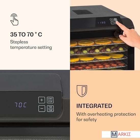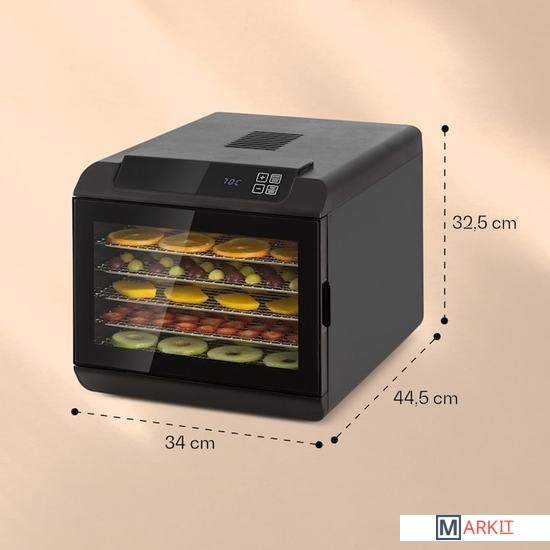 Энергосберегающий дегидратор Arizona Jery с мощностью нагрева 500 Вт и равномерным распределением тепла обеспечивает короткое время сушки и, как следствие, хорошо просушенные продукты без остатков воды.Очистить дегидратор после работы несложно. Металлические решетки и крышка легко снимаются, их можно быстро мыть вручную или в посудомоечной машине. с цифровым дисплеем и стеклянной дверцейзащита от перегревапотребляемая мощность: 420-500 Втэлектропитание: 220-240 В ~ 50/60 Гцплощадь сегмента: около 30 x 33 см (ШхГ)длина сетевого кабеля: около 120 см