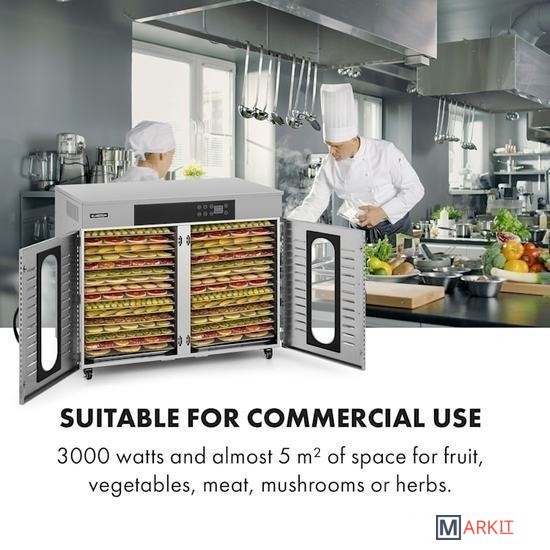 Мощный пищевой дегидратор Klarstein Master Jerky 500 сушит фрукты, овощи, мясо и другие продукты в рекордно короткие сроки. 32 съемных уровня для сушки из нержавеющей стали обеспечивают площадь 40 х 38 см при общей площади сушки 4,86 м² — идеальные условия для профессиональной сушки.Температуру на сенсорной панели можно регулировать от 40 до 90 °C для гибкого приготовления различных блюд. Кроме того, таймер до 24 часов обеспечивает оптимальную адаптацию к высушиваемым продуктам. Благодаря полностью автоматическому процессу сушки с точным соблюдением температурного режима все будет идеально.Полки из нержавеющей стали можно легко мыть или мыть в посудомоечной машине. Конструкция из нержавеющей стали легко моется и может перемещаться благодаря колесикам.Двигатель высокой производительности.Конструкция с двойными стенками для защиты от тепла и сохранения тепла внутри.Рассчитан на 32 - 48 кг продуктов.2 отдельные сушильные камерышум при работе: 45-50 дБнапольные роликипитание: 220 - 240 В ~ | 50/60 ГцРазмеры полки: примерно 40 x 38 см (Ш x Г)Длина сетевого кабеля: около 115 см