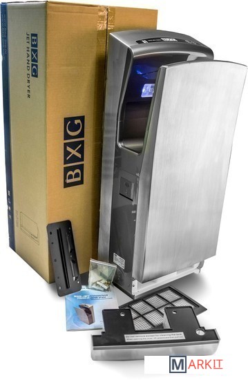 Во время сушки вода не разбрызгивается по сторонам, а стекает в специальный водосборник. Таким образом, в туалетной комнате сохраняется чистота, а шансы поскользнуться, упасть и травмироваться на мокром полу сведены к нулю.Встроенные НЕРА-фильтр и угольные фильтры защищают от распространения болезнетворных микроорганизмов и вирусов, а специальное антибактериальное покрытие эффективно уничтожает любые бактерии и плесень.Сушилка BXG-JET-7000А имеет 2 инфракрасных датчика (верхний и нижний) и обнаруживает руки с разных направлений одновременно. Обычная сушилка для рук имеет только 1 датчик и часто не в состоянии обнаружить руки должным образом. Горящие светодиоды и синяя подсветка укажут зону правильного расположения рук во время сушки.Индикаторы питания и самодиагностики вовремя укажут на сбои в работе системы и соответствующие коды ошибок появятся на информационном табло.Внешний корпус сделан из нержавеющей аустенитной стали AISI-304. Он ударопрочный, кислотостойкий, выдерживает нагрев до 900 градусов. Закрытие панели с блоком управления на ключ позволяет устанавливать сушилку в неохраняемых туалетных комнатах и гарантирует сохранность ее внутреннего механизма.Эксплуатационные затраты минимальны: необходимо 1 раз в неделю сливать воду в водосборнике и чистить НЕРА-фильтр.Высочайший класс влагозащиты изделия - IPx4 означает надежную защиту корпуса от попадания внутрь воды с любого направления и недопустимости вследствие этого поражения человека током.