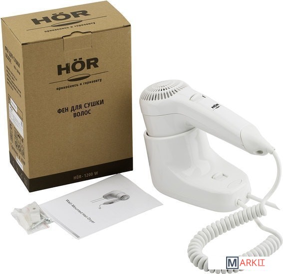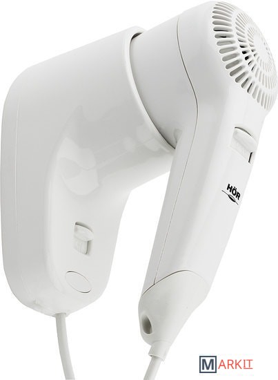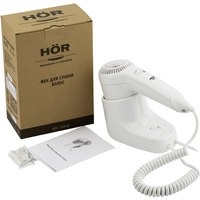 Настенный фен для сушки волос HÖR – это современный прибор, без которого уже трудно представить любой гостиничный номер или фитнес центр.Корпус фена производится из ударопрочного ABS пластика белого цвета. Они влагоустойчивы и безопасны: не деформируются при использовании, несмотря на горячий воздух.Фены HÖR быстро и бережно сушат волосы, благодаря высокому потоку воздуха в 13 м/сек и регуляторам температуры и скорости обдува. Экономичный нагревательный элемент в 1200 Вт снижает расход электроэнергии.