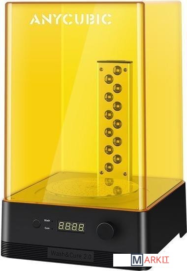 Полимеризационная камера (УФ-камера) и Мойка Anycubic Wash and Cure 2.0 - это необходимое дополнение 2-в-1 для фотополимерного принтера. Оно обеспечивает качественную очистку готовой модели и её дозасветку УФ-излучением.с длиной волны 405 нм.Версия 2.0 отличается повышенной вместимостью. Максимальный размер модели для мойки в ней составляет 120х74х165 мм, а для засветки УФ-излучением - 140х65 мм.Полимеризационная камера имеет герметичную ёмкость для промывки модели, поворотную платформу для обработки модели со всех сторон и мощную УФ-матрицу для надёжной засветки. Для удобства пользователя предусмотрен регулируемый кронштейн, благодаря которому можно легко обрабатывать даже самые высокие модели. При необходимости можно снять столик непосредственно с 3Д принтера и закрепить его на кронштейне полимеризационной камеры.Вся работа полностью автоматизирована. Для управления используется удобная сенсорная панель. Можно установить таймер от 1 до 60 минут.