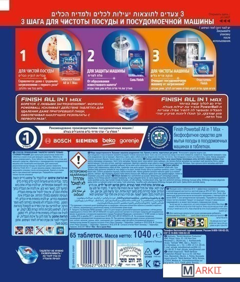 Markit » Средства для посудомоечных машин » Таблетки для посудомоечной машины Finish All in 1 Max (65 шт)