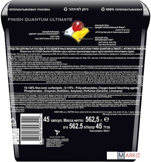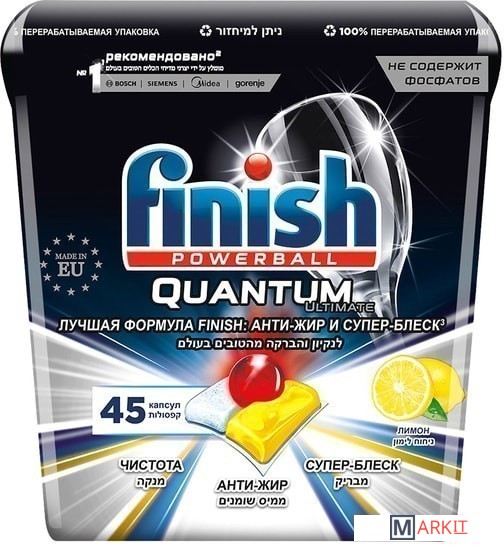 Markit » Средства для посудомоечных машин » Таблетки для посудомоечной машины Finish PowerBall Quantum Ultimate Лимон коробка (45 шт)