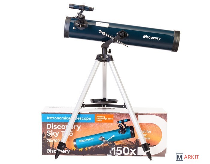 Телескоп Discovery Sky T76 создан специально для начинающих астрономов, которые только знакомятся с основами астрономии и ищут первый телескоп в жизни. В этот рефлектор Ньютона хорошо видны Луна, планеты Солнечной системы и их спутники, кометы и метеорные потоки, а также многие яркие объекты дальнего космоса – туманности, галактики и звездные скопления. В комплекте есть все необходимое для старта, в том числе познавательная книга о космосе.Богатый набор аксессуаров, включающий разнофокусные окуляры и линзу Барлоу, упрощает подбор оптимального для наблюдений увеличения. Благодаря им один и тот же астрономический объект можно изучать на разной кратности, что значительно расширяет наблюдательный опыт. Поиск объектов на звездном небе осуществляется при помощи классического оптического искателя.