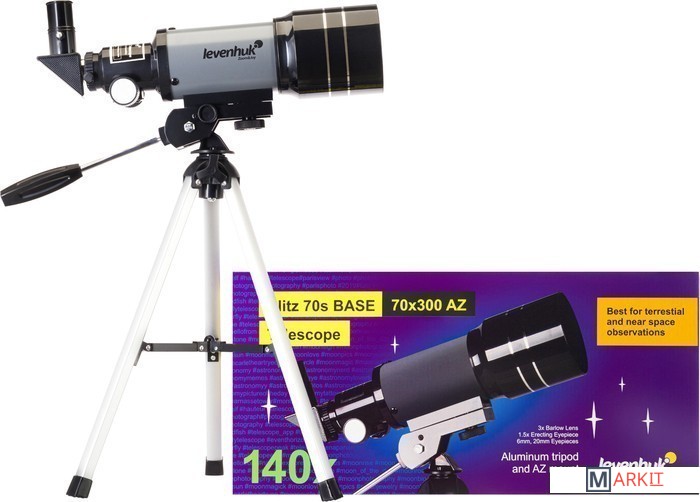 Levenhuk Blitz 70s BASE – это короткофокусный рефрактор-ахромат с широким полем зрения, который прекрасно подойдет для поездок. Труба небольшого размера дополнена настольной треногой, поэтому телескоп занимает крайне мало места и в собранном, и в разобранном состоянии. Это хороший вариант для наблюдений с балкона и выездных астрофестов. Также прибор способен заменить зрительную трубу и помочь в изучении наземных ландшафтов.