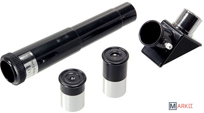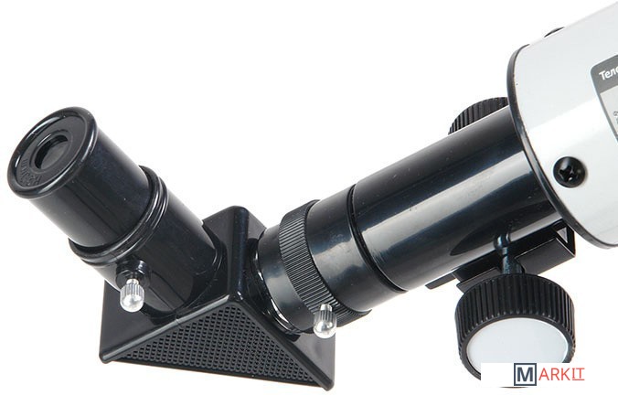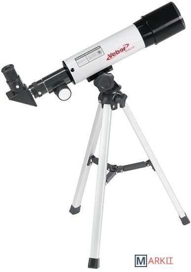 Его можно использовать и днем и ночью. Днем - как обычную подзорную трубу, а ночью, естественно, по прямому назначению. Телескоп дает прямое (не перевернутое) изображение.В него можно увидеть лунные кратеры диаметром больше 10 км, Марс, Сатурн и фазы Венеры. С помощью сменных окуляров (в комплекте 2 шт.), можно получить увеличение от 18х до 90х. Окулярная часть с 90° зеркалом позволяет удобно вести наблюдение, разместив прибор просто на столе (высота штатива 360 мм). Наблюдения днем лучше вести при увеличении 18х (с окуляром 20 мм), тогда ближняя точка фокусировки будет около 5 метров.
