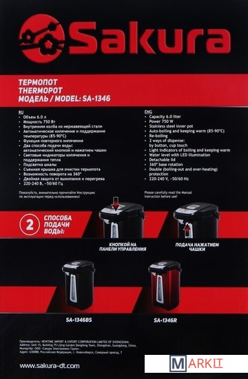Markit » Электрочайники и термопоты » Термопот Sakura SA-1346BR