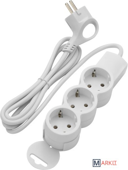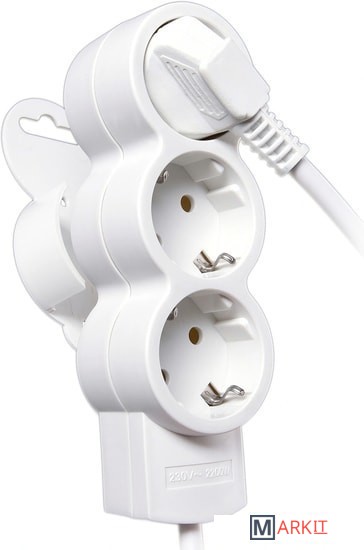 Наличие крепления «quick fix» на корпусе позволяет подвесить удлинитель на крючок. Провод оснащен литой вилкой г-образной формы.